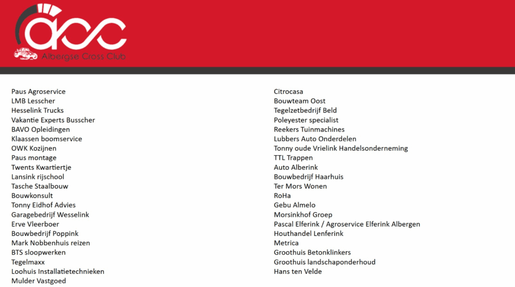 Sponsoren Autocross Albergen 12 Oktober 2025
